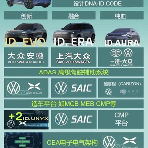 大众今年在上海车展期间亮相了三款全新概念车:一汽-大众 ID. AURA、上汽大众 ID.ERA和大众安徽 ID.EVO。