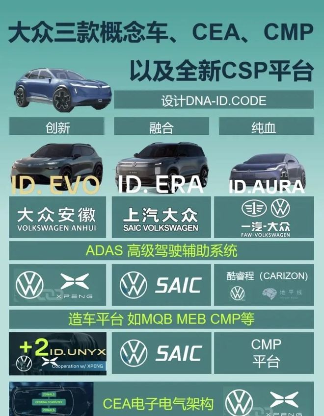 大众中国官方表示:「2026年起,大众和小鹏联合开发的电子电气架构CEA(China Electronic Architecture)架构将应用于本土生产的CMP及MEB平台车型。