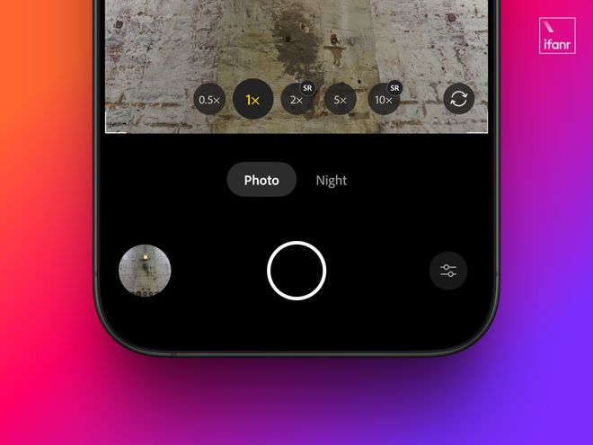 看完了让人眼花缭乱的焦段布局,我们接着将视线转向更下方,照片与夜景模式横置在焦段布局与快门键之间,在这里你可以快速切换两个模式,以应对不同的拍摄场景,不过这里与顶部右侧的模式切换出现了重复,稍微显得有些浪费 UI 位置。