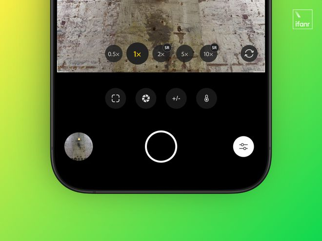 很显眼的是,在 2× 与 10× 这两个焦段上,标着 SR 的字样,从官方的说明书我们可以得知,SR 的全称是 Multi-frame super-resolution(多帧超分辨率技术),基于 1× 主摄的 2× 与基于 5× 的 10× 将会在这个技术的支持下获得可以媲美光学焦段的清晰度。