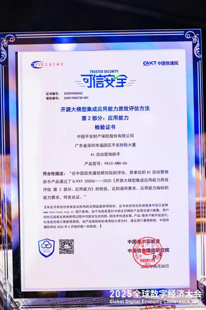 金融圈又出AI好消息。7月3日,中国信息通信研究院(简称“信通院”)重磅公布2025年“开源大模型+”首批软件创新应用典型案例,平安集团旗下平安产险、平安人寿、平安好医生共计14款智能化产品脱颖而出,通过开源大模型集成应用能力质效评估并入选首批精选案例。平安金融壹账通打造的“基于大模型的智能客服机器人”(小壹智能客服机器人)也于近期入选工信部第七届数字普惠金融大会“数字普惠金融技术创新成果”。