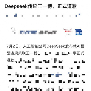 7月3日,有媒体在未对DeepSeek官方渠道进行核实的情况下,仅凭社交平台上的相关截图,便发布了题为“DeepSeek向王一博道歉”的报道。这使得原本的虚假信息,在一定程度上获得了“权威背书”。同日,当有用户在DeepSeek中查询“DeepSeek是否向王一博道歉”时,大模型因抓取到了这些媒体报道和网络上的大量用户讨论,从而错误地判定该信息为真。