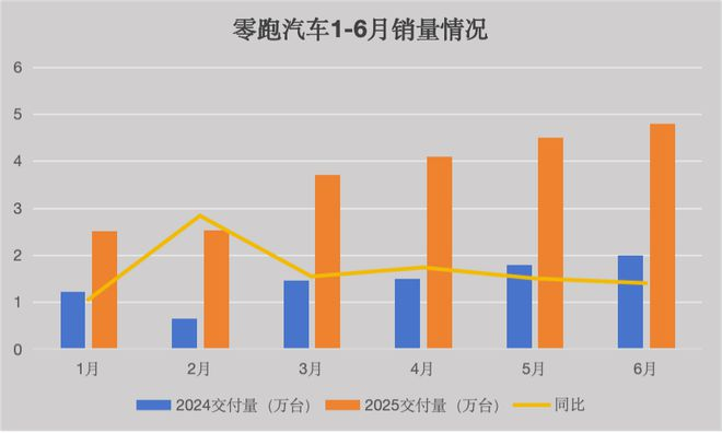 2025年上半年,零跑汽车累计交付22.17万辆,同比增长超156%。