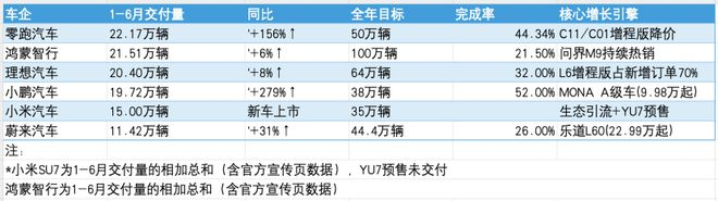 在行业整体增长背景下,新势力车企呈现出前所未有的分化态势,可见竞争之激烈。小鹏汽车起死回生,今年上半年还接连推出新车型继续发力,半年的时间卖掉了2024年一年的总量;小米发布新款车型YU7之后,一小时大定超过28.9万单,眼下最大的烦恼就是如何交付。