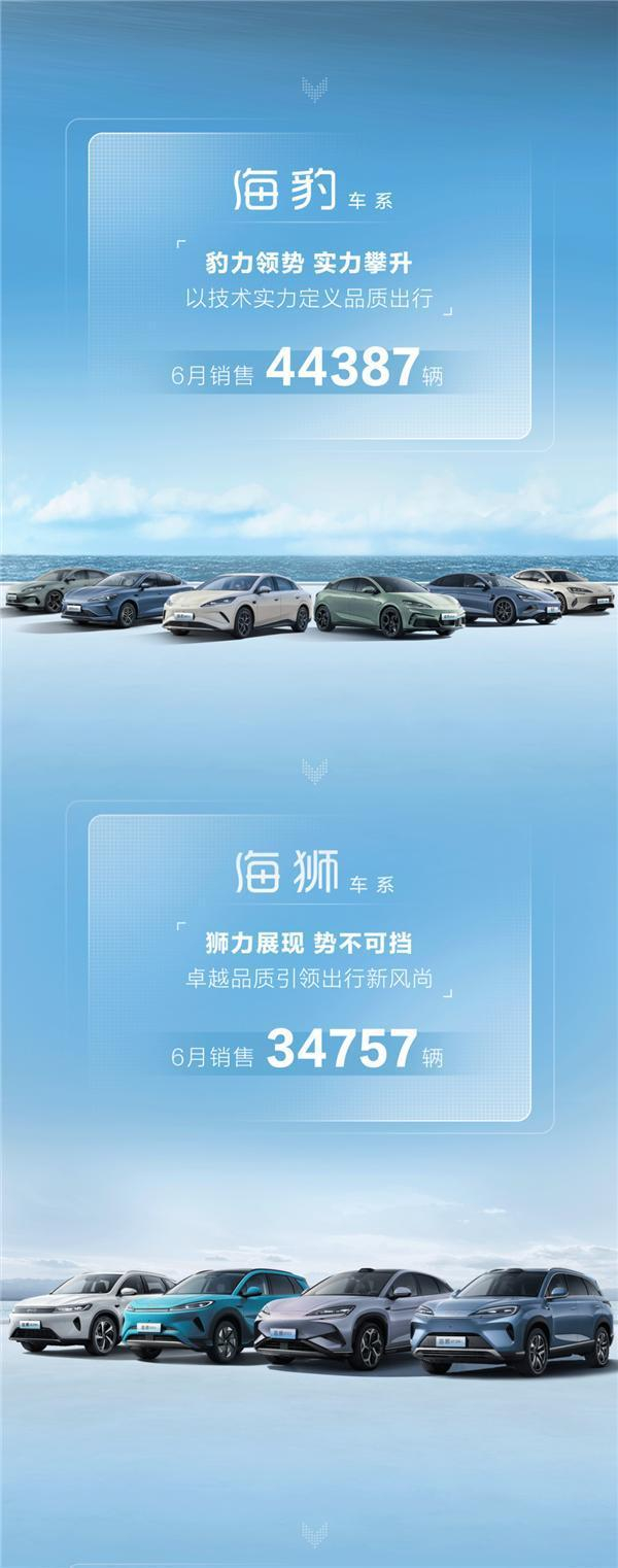刚刚过去的6月份,海洋网销售196766辆。细分车系中,海豹系6月售出44387辆;海狮系6月销量34757辆。