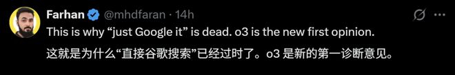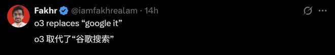 甚至有网友惊叹:o3取代了「google it」(谷歌搜索)!