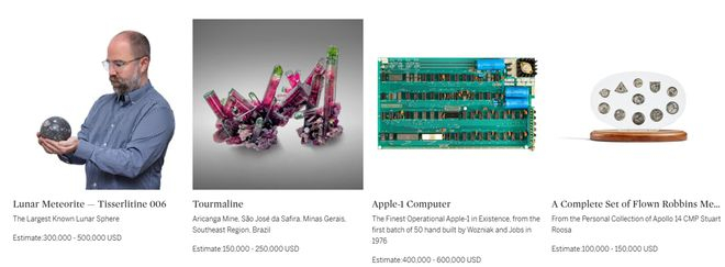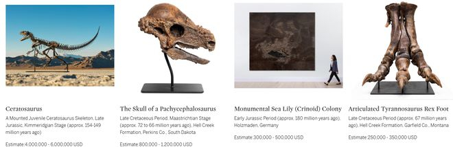 值得一提的是,同场拍卖会上还包括 1.5 亿年前角鼻龙骨架,估价 400-600 万美元(现汇率约合 2866.9 - 4300.3 万元人民币);以及月球陨石、Apple-1 电脑、一套完整的阿波罗 7 号至 17 号飞行纪念章等藏品。