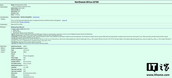 拍卖行表示,火星碎片极其罕见:在超过 77,000 颗官方认可的陨石中只有 400 颗是火星陨石,总重量约为 374 公斤,其中 NWA 16788 重 24.67 公斤,约占目前已知火星物质总量的 6.5%。