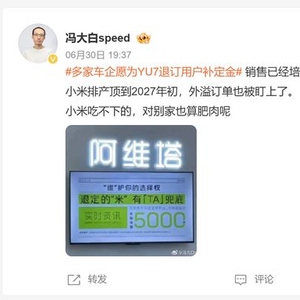 但面对近一年的排队时间,以及明年结尾款时还要交购置税,他不认为自己对小米的“爱”能够跨越这一年的等待,对小米YU7也不至于喜欢到这个地步。另外,小米SU7目前的交付周期仍然徘徊在38周左右,换算下来差不多要10个月,如果不是只看中小米汽车,也保不准谁能坚持这么久。