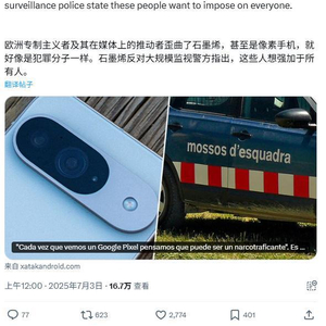 7 月 3 日,GrapheneOS 团队通过官方账号声明:“欧洲威权机构及媒体将 GrapheneOS 乃至 Pixel 手机曲解为犯罪工具。我们反对这些强加于民众的大规模监控政策。安全技术本质是工具,既可用于善举也可用于恶行。”