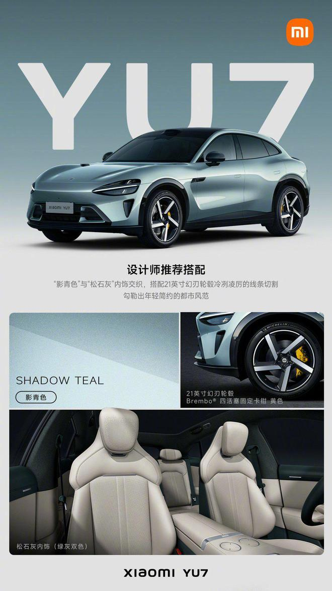 小米 YU7 拥有 9 款配色,分为跑车色系、时尚色系、豪华色系、经典色系。