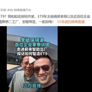 据了解,此次活动由知名财经作家、ET9 车主吴晓波及近百位企业家参加。吴晓波在参观中表示,新能源汽车为中国先进制造业“续命 10 年”,中国新能源汽车的发展,是一批新势力、有互联网思维的人掀起的浪潮。