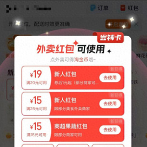 他从支付宝搜索“淘宝闪购”,一进入平台,手机屏幕就跳出了外卖新人红包。“力度最大的是20减19的,还有25减15的。”这个补贴力度让吴先生有些吃惊:“如果我只点一份十几块钱的,那岂不是相当于免费吃?”