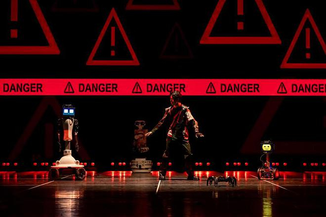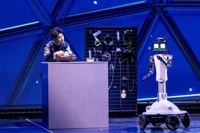 “这是采用麦克纳姆轮,可以灵活走位、平移的机器人”“这是大家最关注的人性机器人”……上周,在国内首部机器人戏剧《巨物之城》演出谢幕时,导演、上海戏剧学院数字媒体艺术专业教研室主任戴炜向现场观众介绍起这群特殊的演员。随之举行的是一场热闹的“见面会”,现场观众迫不及待地走上舞台,和刚刚完成了80分钟演出的机器人们合影留念。