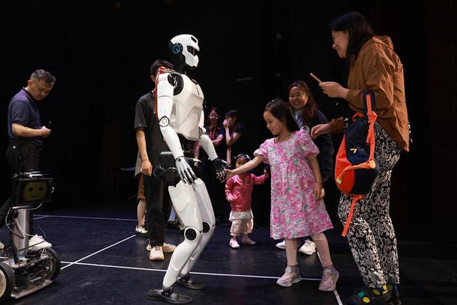 这是发生在中国大戏院长三角城市戏剧节中的最“科幻”一幕,国内领先的机器人走出实验室和展厅,以接地气、亲和的方式来到普通人身边。面对这样的场景,人们不再那么陌生——2025春晚上,张艺谋导演的《秧BOT》让人形机器人略显滑稽地扭起秧歌;上半年,半程马拉松也迎来人形机器人“跌跌撞撞”的身影。“我们在探索一种可能性,试着模拟发生在未来的场景。”《巨物之城》艺术总监、上海戏剧学院艺术科技与管理学院副院长沈倩对记者说,“无论对于机器人还是演艺产业来说,都具有破圈的意义。”诚然,机器人仍在亦步亦趋地跟上人类的节奏,但其不断前进的脚步已经令人激动。面对“人机共生”的时代命题,上海迈出了全国舞台实践的第一步。