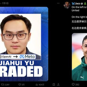 而在“小扎抢人”、“Meta新团队”和“首批名单”等众多热点话题之下,却有一位华人在X上脱颖而出,独立成为了另一个大热点——余家辉。原因无他,正是因为有传言称他就是“转会费”第一年高达1亿美元那个人(也是“超级智能实验室”的首批成员)。