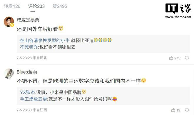下方最高赞评论表示“还是国外车牌好看(狗头)”。