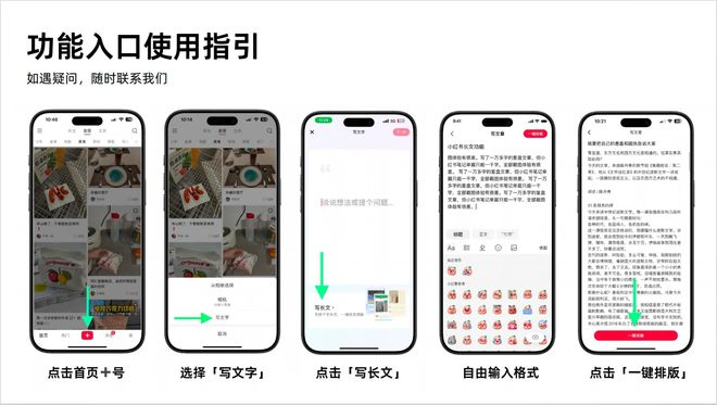 据悉,小红书长文标题依然限 20 字内,而正文可以输入千字以上,支持插入图片或表情包,并配有一键排版功能。点击「一键排版」后,长文会自动切分,以图片形式呈现。