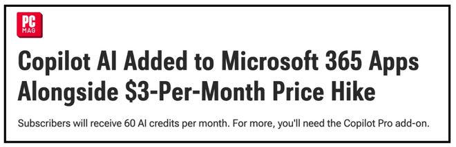 更离谱的是,微软还把每月的订阅费涨了3美元,就是为了覆盖所谓的这些新增的AI「福利」。