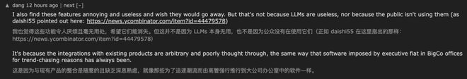 一位网友非常认同Gioia的观点,他表示,「并不是因为LLM毫无用处,而是科技公司将其与产品的整合缺乏深度思考」。