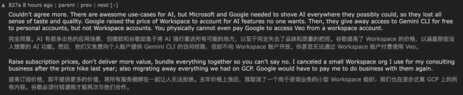 微软和谷歌急于将AI塞进所有地方,完全失去了质量把控。订阅价格提高,却不提供更多的价值。