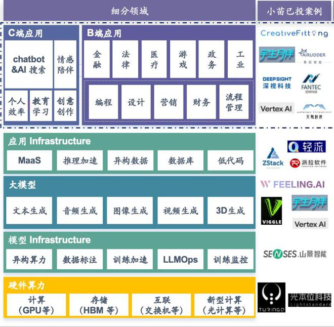 • 在人工智能侧,在最底端的硬件算力层,GPU等传统算力领域初创公司机会小,机构可多关注下一代新型算力及端侧算力的新机会;在模型层,可关注异构算力混合之后会产生的一些算力的整合机会,其中包括一些数据的相关标注和服务的机会;在大模型层,可关注多模态和跨模态的融合机会,尤其3D的空间智能作为AGI感知的基座,有可能重构人机交互的范式,需提前关注3D模型技术;在应用层之间,可关注异构算力调度、推理加速等细分机会,但需注意传统云厂商凭借全栈服务覆盖可能挤压中间层生存空间;在终端应用层,C端可关注捕捉用户情绪价值并从高频交互需求切入的泛娱乐场景应用,B端可关注在垂直行业(比如法律、医疗等)能提升效率的应用。