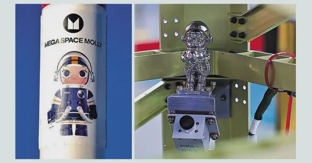 随着航天发射的频次越来越高,可用的载荷越来越多,一些公司已经不满足于在火箭身上涂自家logo,他们开始把产品也送进太空吸引眼球。最近风光无限的泡泡玛特,就曾经把自己的招牌IPMolly装在了谷神星火箭上,还放出了Molly在轨道上飞行的视频,网友们纷纷来看热闹。泡泡玛特也抓住热度,发行太空限定款的Molly,狠狠赚了一波。