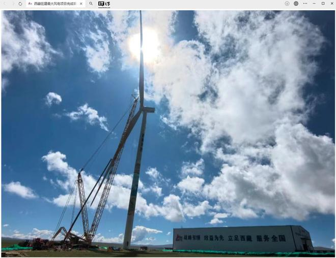 西藏在建最大风电项目完成首台风力发电机组吊装