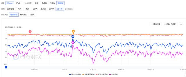 从过去一年的畅销榜排名来看,《指尖四川麻将》大部分时间在中国内地iOS游戏畅销榜排名位居前50。该游戏曾于2024年11月达到中国内地iOS桌面游戏畅销榜第3名、卡牌游戏畅销榜第4名。