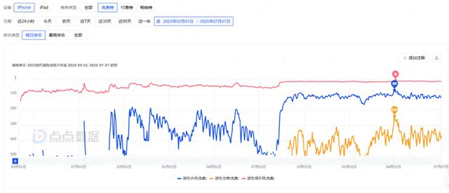点点数据监测的收入口径是App Store、Google Play应用商店内购净收入(IAP),不包含第三方以及广告收入,且扣除平台分成。