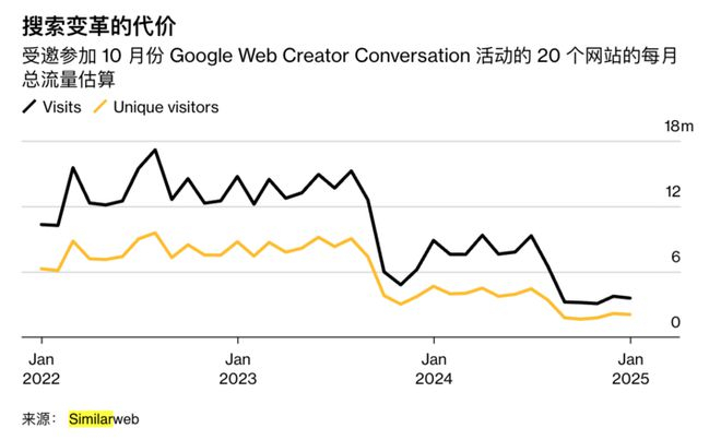 彭博社做了一些采访,发现很多网站的流量因为 AI 受到严重冲击,不得不调整内容发行策略,更有甚者只能关门大吉。