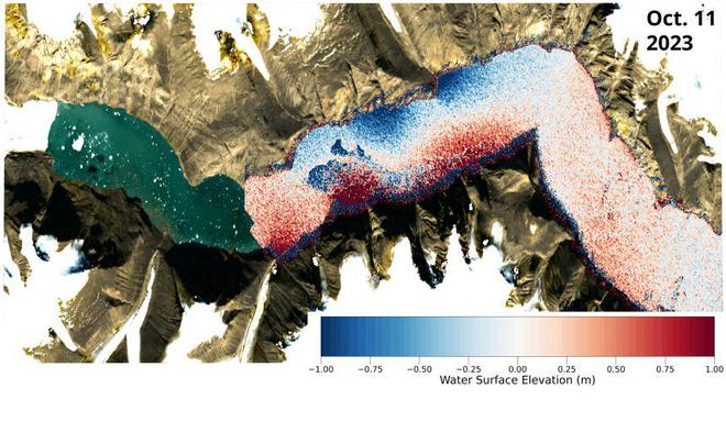 研究人员利用这一先进工具,绘制了迪克森峡湾在双重海啸发生后的一系列水面高程图。信息显示,峡湾的水面发生了多达两米的倾斜。而更有意思的是,水面倾斜的方向在不同时间点发生了变化 —— 这证明水面在来回摆动,形成了典型的“倒水波”现象。