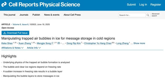 当然不是说在冰上刻字……而是一种更加精妙的方法:通过操控结冰时困住的微小气泡,来编码信息。