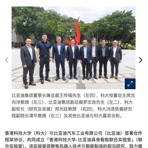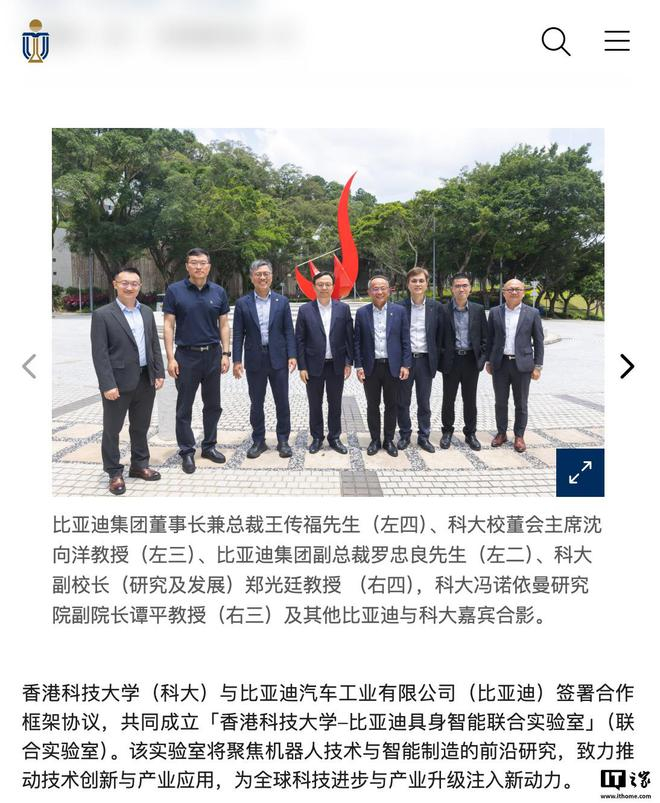 IT之家 7 月 7 日消息,香港科技大学官网今日发布消息,宣布与比亚迪汽车工业有限公司签署合作框架协议,共同成立“香港科技大学–比亚迪具身智能联合实验室”。
