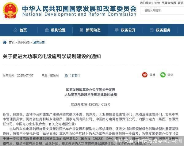 新能源车销量持续增长的同时,如何进一步发挥充电基础设施的协同效应成为关键。7月7日,国家发展改革委办公厅、国家能源局综合司、工业和信息化部办公厅、交通运输部办公厅四部门联合发布的《国家发展改革委办公厅等关于促进大功率充电设施科学规划建设的通知》(以下简称《通知》)提出,电动汽车充电基础设施是支撑新能源汽车产业发展和新型电力系统建设、促进交通能源领域绿色低碳转型的重要基础设施。随着产业迭代升级,单枪充电功率达到250千瓦以上的大功率充电设施得到进一步普及。到2027年底,力争全国范围内大功率充电设施超过10万台,服务品质和技术应用实现迭代升级。