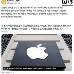 IT之家 7 月 8 日消息,路透社今日报道称,苹果公司当地时间周一于美国联邦巡回上诉法院就 Apple Watch 进口禁令提出上诉,要求推翻美国国际贸易委员会(ITC)2023 年底作出的裁决。