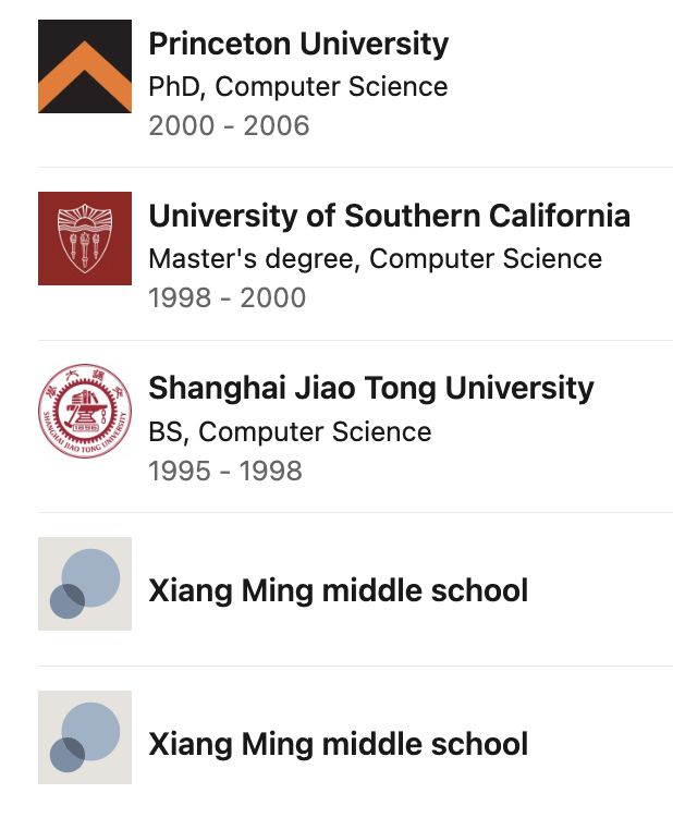 根据公开资料,他于1998年获得上海交通大学计算机科学学士学位,随后来到美国深造。