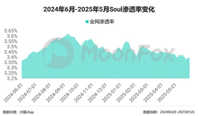 近年来soul持续冲击上市,但并未闯关成功,从2024年9月开始,其用户渗透率持续下滑。