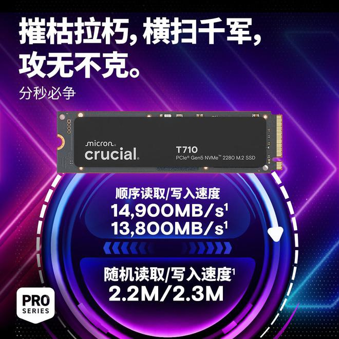 英睿达新旗舰 M.2 PCIe 5.0 固态硬盘 T710 上市,4TB 款 4499 元