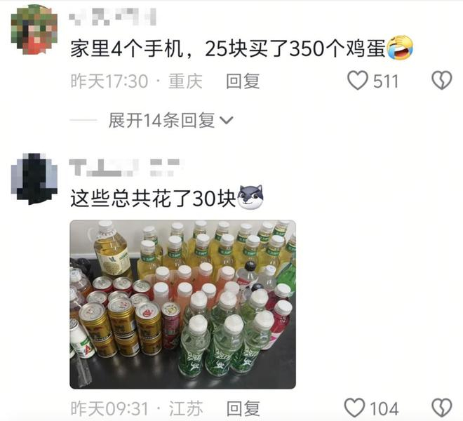有一家子 4 个账号,花了 25 块钱买了 350 个鸡蛋的,也有 30 块钱愣是把自家整成了小卖部的。。。