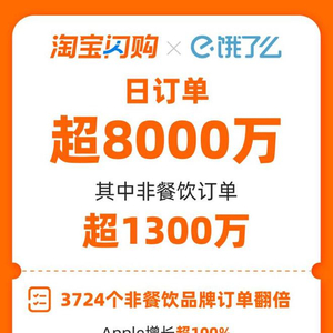淘宝闪购、饿了么联合宣布,淘宝闪购日订单数超8000万,其中非餐饮订单超1300万,淘宝闪购日活跃用户超2亿。