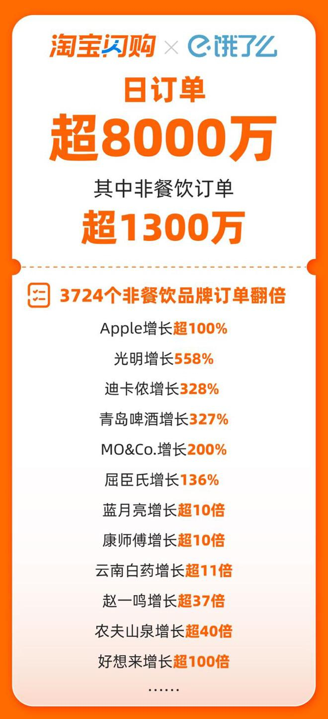 淘宝闪购日订单超8000万 3724个非餐饮品牌订单翻倍增长