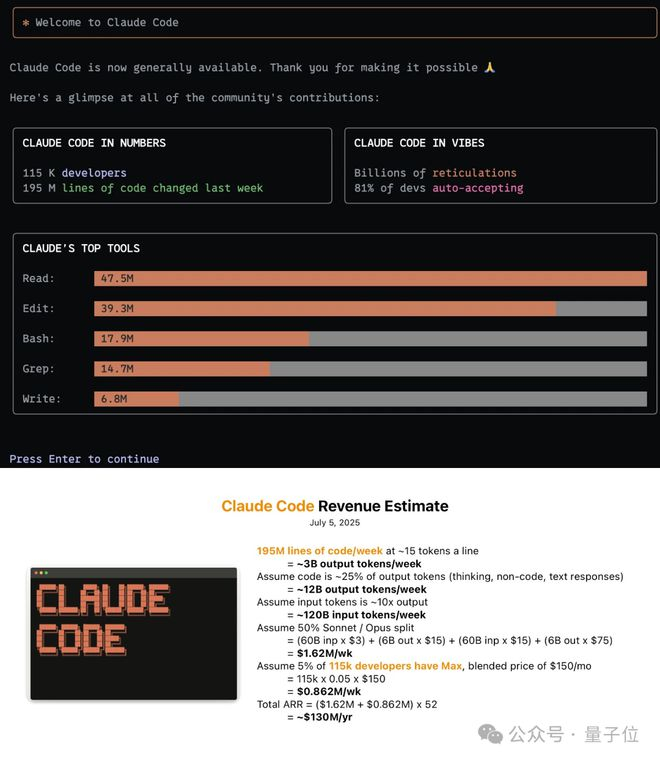 假设Claude code是一个初级工程师,这些数据意味着它的年收入可达1.3亿美元。