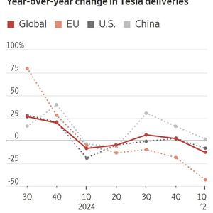 特斯拉在中美欧销量均下滑 《华尔街日报》制图