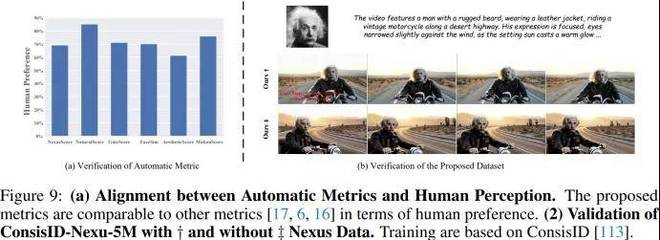 团队还通过人工交叉验证验证指标和数据集的有效性。显然,所提出的三个指标与人类感知一致,能够准确反映主体一致性、主体自然性和文本相关性。并且数据集能有效解决 S2V 的三大核心问题。