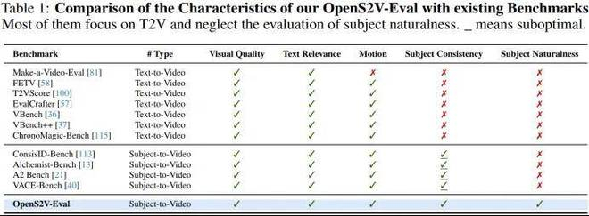 OpenS2V-Eval:全球首个面向主体一致性、自然度和文本对齐的 S2V 细粒度评测基准,让不同模型在主体一致性上真正可比。