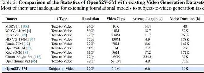 此外,当社区尝试将基础模型扩展到下游任务时,现有数据集在支持复杂任务方面仍存在明显不足(见表格对比)。为弥补这一限制,团队提出了 OpenS2V-5M,这是首个专为 Subject-to-Video(S2V)设计的百万级规模数据集,同时也可用于文本生成视频等任务。