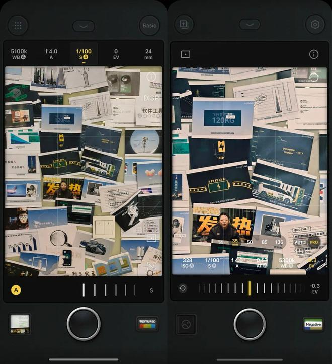 可一上滑打开人文街拍相机,就发现 Pro mini 的负片,跟其他人文街拍的滤镜一样,默认有且只有 Auto 模式,缺少了 X200 Ultra 上加入的 ISO 调节和手动对焦功能;滤镜的饱和度、对比度、锐度和暗角,效果也没法自定义调节。