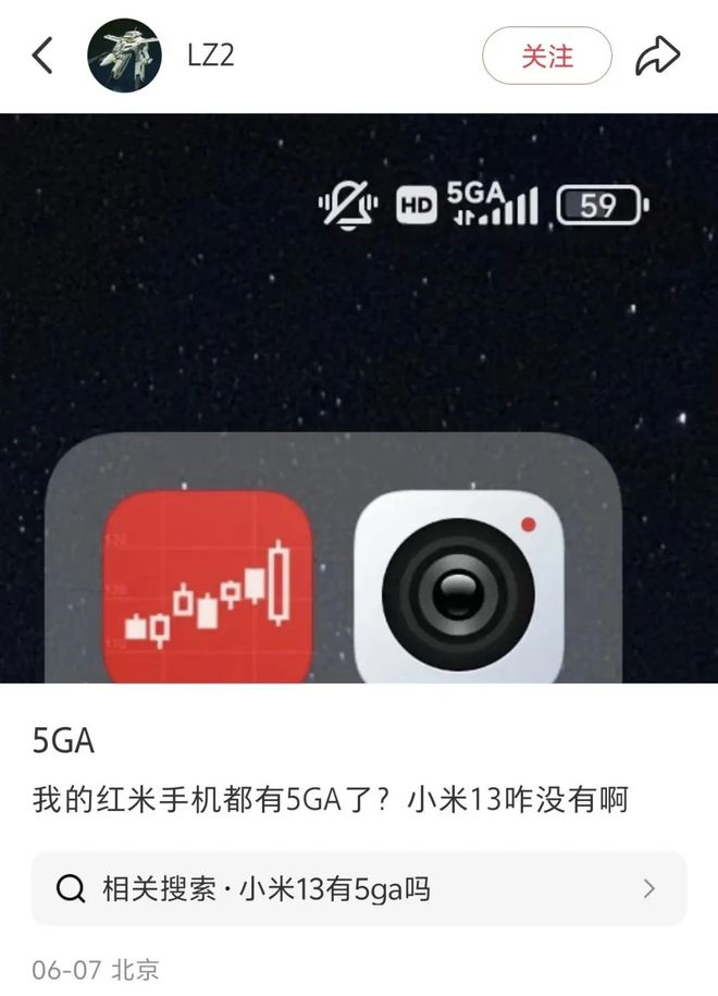 我们询问了业内的小伙伴,得到的答复也是,小米 13 的处理器和射频主板都支持 5G-A 标准,现阶段不支持 5G-A,大概率是软件还没更新。