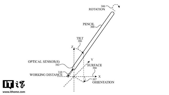 IT之家援引博文介绍,该专利名为《带有光学传感器的输入设备》,概述了 Apple Pencil 设计方案,可以在任何表面甚至是其上方使用。该技术不再依赖和 iPad 内部的传感器互动,而是将所有传感器移至 Apple Pencil 内部。